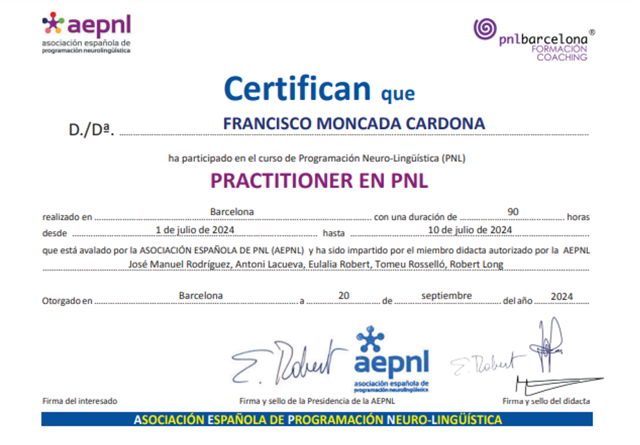 PRACTITIONER egresado de PNL Barcelona y estudiante de últimos semestres